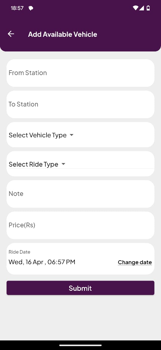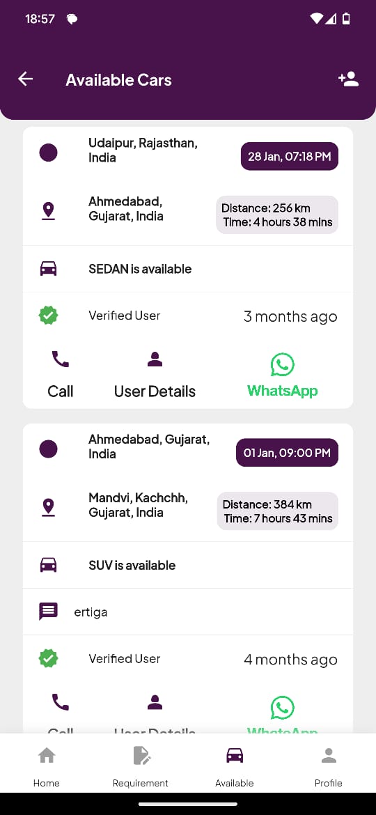 Users can post ride availability or request a ride. Both drivers and booking agents can publish listings based on routes, dates, and price.