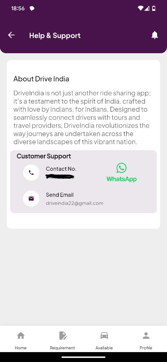 Drive India is a mobile-first marketplace that connects drivers, passengers, and travel agents across India. The app simplifies the logistics of hiring and offering rides—whether it’s for daily commutes, outstation trips, or package tours.