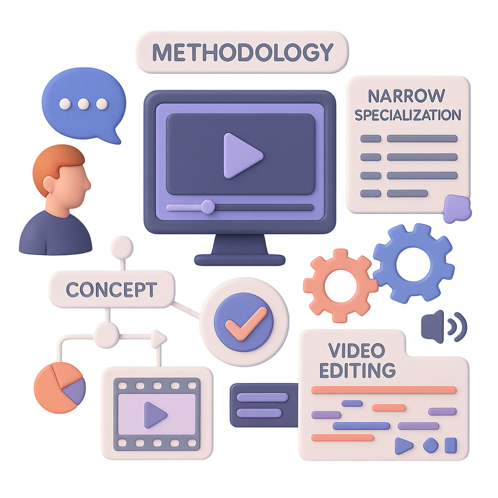 - Narrow Specialization: Our dedicated team includes directors, editors, animators, and AI specialists, each focusing on what they do best.